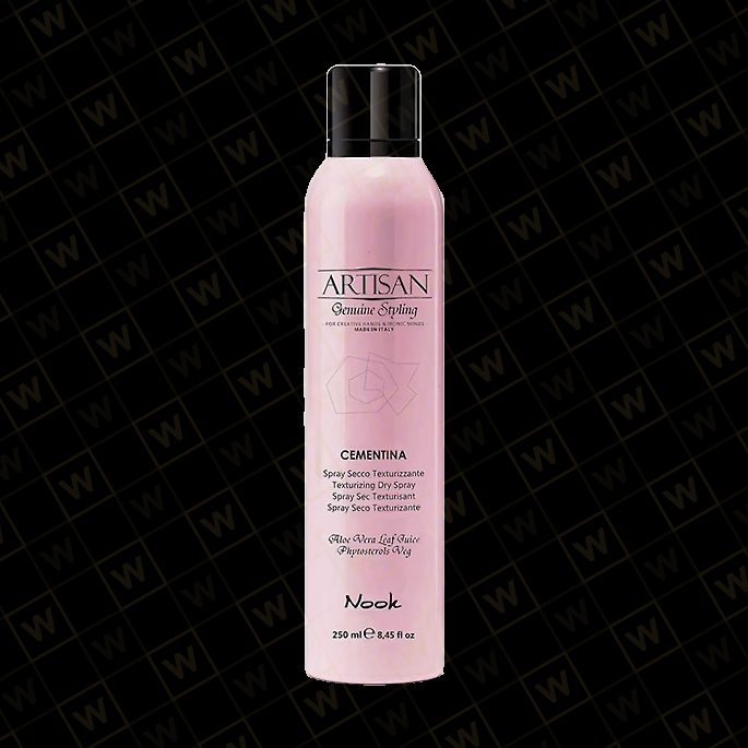 Nook Artisan Cementina to suchy spray strukturyzujący i nadający objętości idealny dla długich włosów, w szczególności dla delikatnych i cienkich.